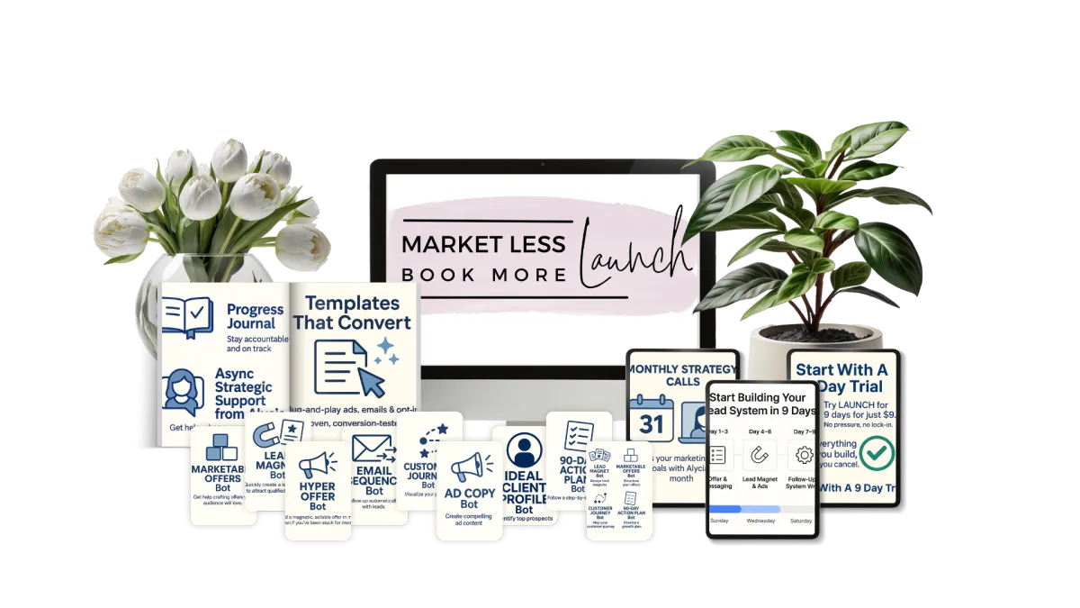 Market Less Book More Launch gives you the full system to attract quality leads without relying on referrals, reels, or random guesswork.